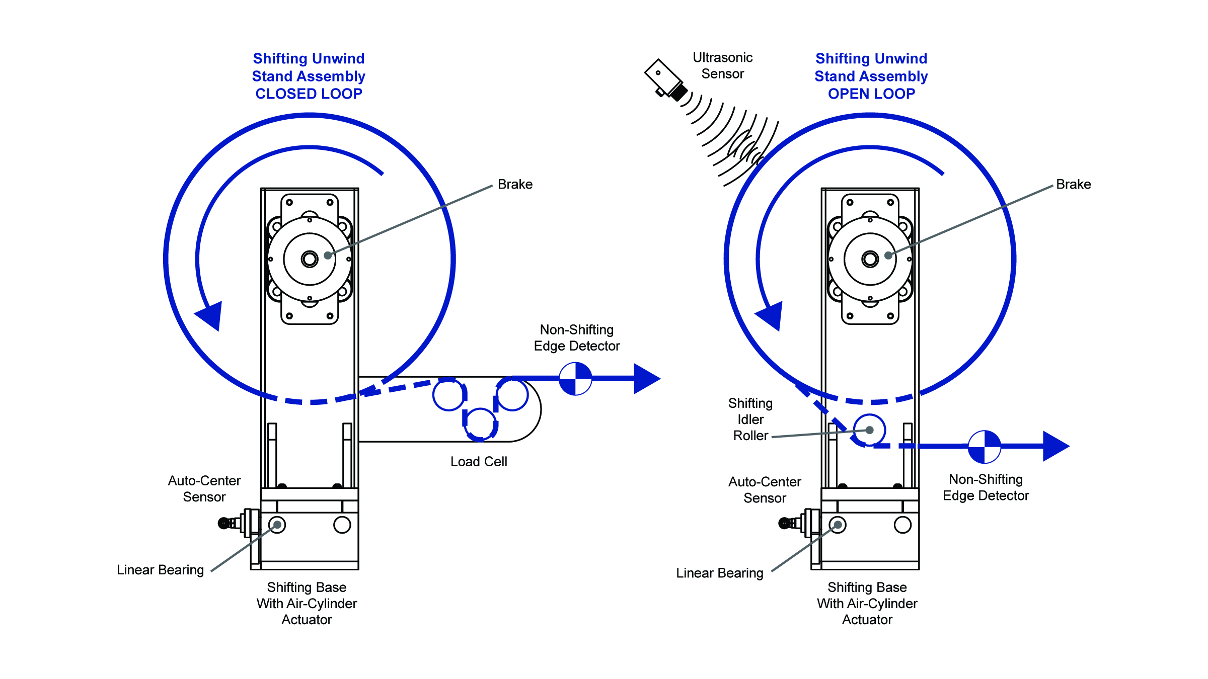Features: All-Air Servo Controller, Ultrasonic Sensor, Montalvo tension control components, and a continuous leaf core shaft. Framework and idler rollers are aluminum.